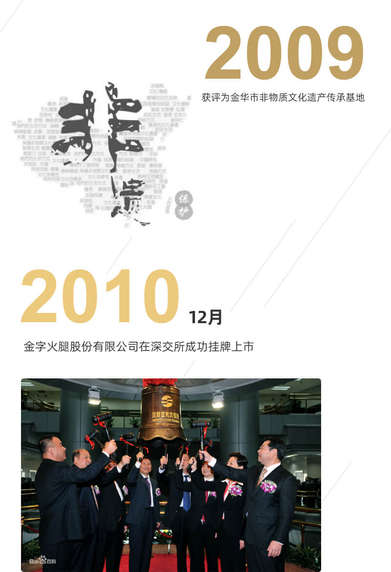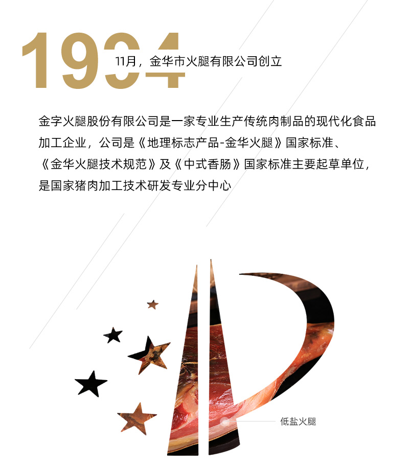 金字火腿股份有限公司是一家專業(yè)生產(chǎn)傳統(tǒng)肉制品的現(xiàn)代化食品加工企業(yè),公司是《地理標(biāo)志產(chǎn)品-金華火腿》國(guó)家標(biāo)準(zhǔn)、