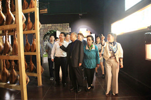 6月28日下午,省人大常委會(huì)副主任馮明一行在金華市人大常委會(huì)副主任陳志身等的陪同下,參觀考察了建于金字火腿內(nèi)的中國火腿博覽館和世界火腿博覽館,了解金華火腿的行業(yè)發(fā)展現(xiàn)狀。 金字火腿總經(jīng)理吳月肖向馮明一行介紹了金華火腿的歷史文化、傳統(tǒng)制作工藝、營養(yǎng)價(jià)值和儲(chǔ)存食用方法。馮明指出,金華火腿雖然是一個(gè)傳統(tǒng)行業(yè),但也要跟上形勢,通過各種渠道進(jìn)行推廣傳播,她特別強(qiáng)調(diào)了互聯(lián)網(wǎng)營銷在當(dāng)代企業(yè)發(fā)展中的作用,十分關(guān)心企業(yè)在這一方面的發(fā)展……